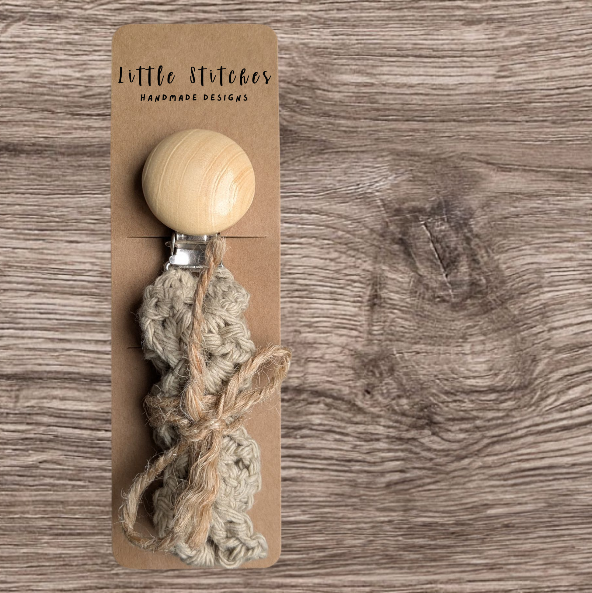 Keep pacifiers close and off the floor with this cute cotton pacifier clip. Designed for convenience, it attaches easily to clothes or blankets. Perfect for on-the-go moments and busy little explorers!