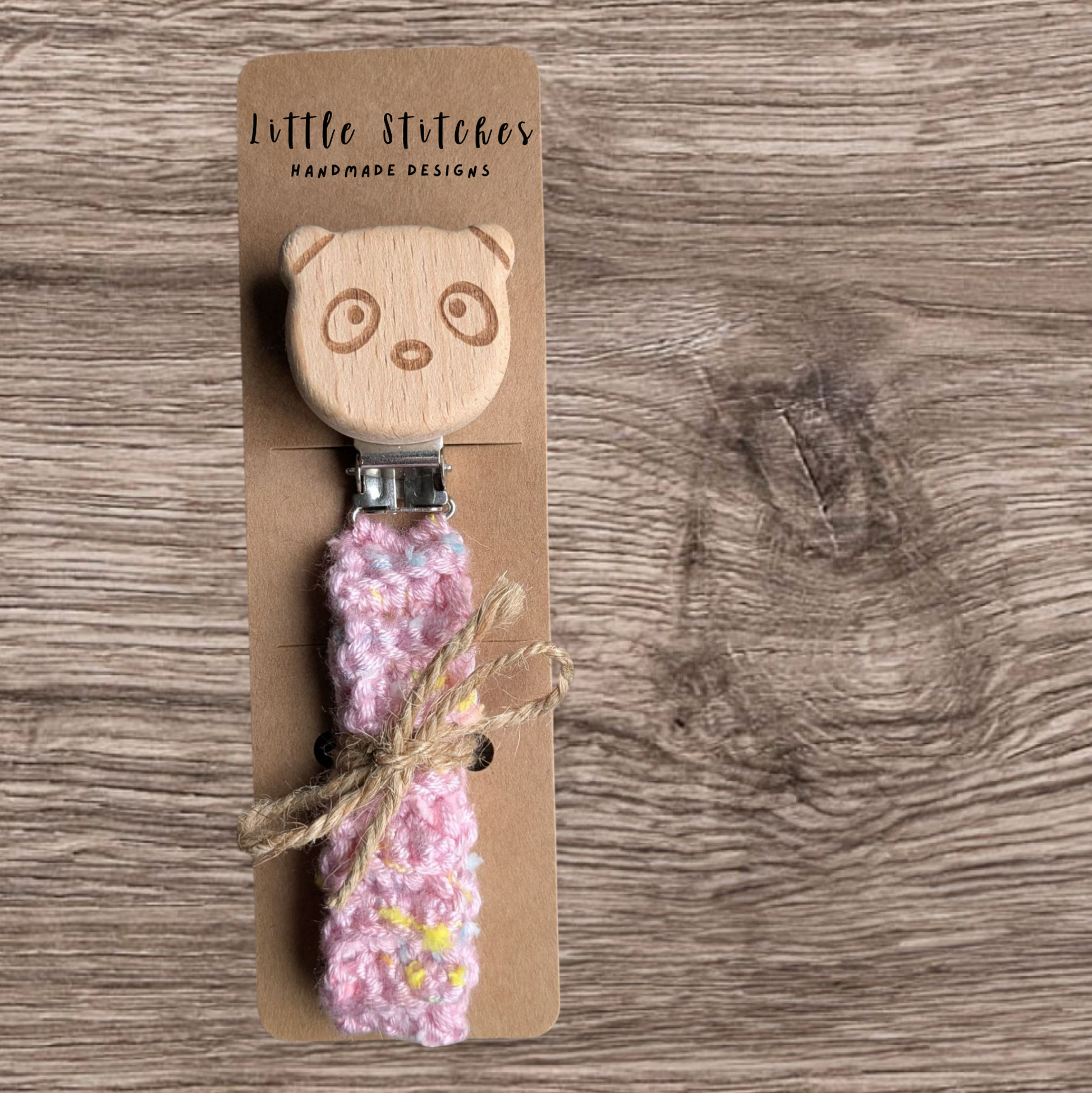 Keep pacifiers close and off the floor with this cute cotton pacifier clip. Designed for convenience, it attaches easily to clothes or blankets. Perfect for on-the-go moments and busy little explorers!